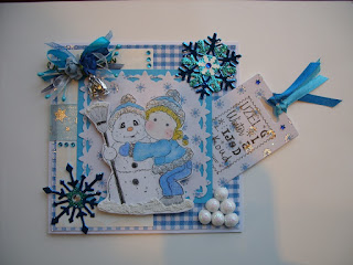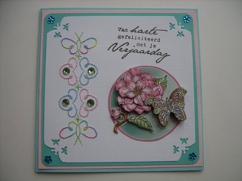 Hiervoor wit en ijsblauw in 2 tinten gebruikt. Ook hier creatables van MD gebruikt.