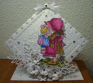 Easelkaart in allerlei lieve en zachte kleurtjes met een nieuw plaatje van Yvonne Creations.