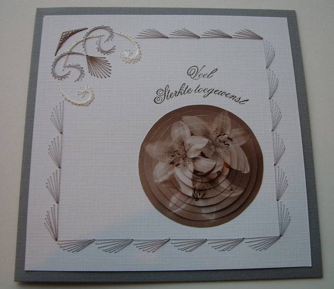 Verder bloem nummer 16 van Crealies gebruikt en stempels van Papermania en boekenvoordeel.