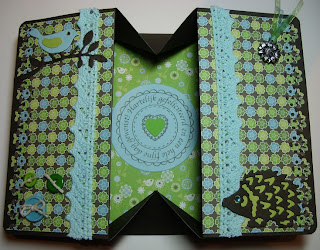 Dit is de binnenkant met een post-it klad blokje erin. Ook een vakje gemaakt voor een label met de felicitaties erin. Hier kan evt. ook nog geld voor de jarige in worden gestopt.