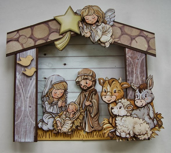Wat een prachtige kerststal heb je gemaakt, zo zie je maar wat je allemaal voor verschillende creaties kan maken met de plaatjes van Yvonne, je hebt dit prachtig gemaakt.