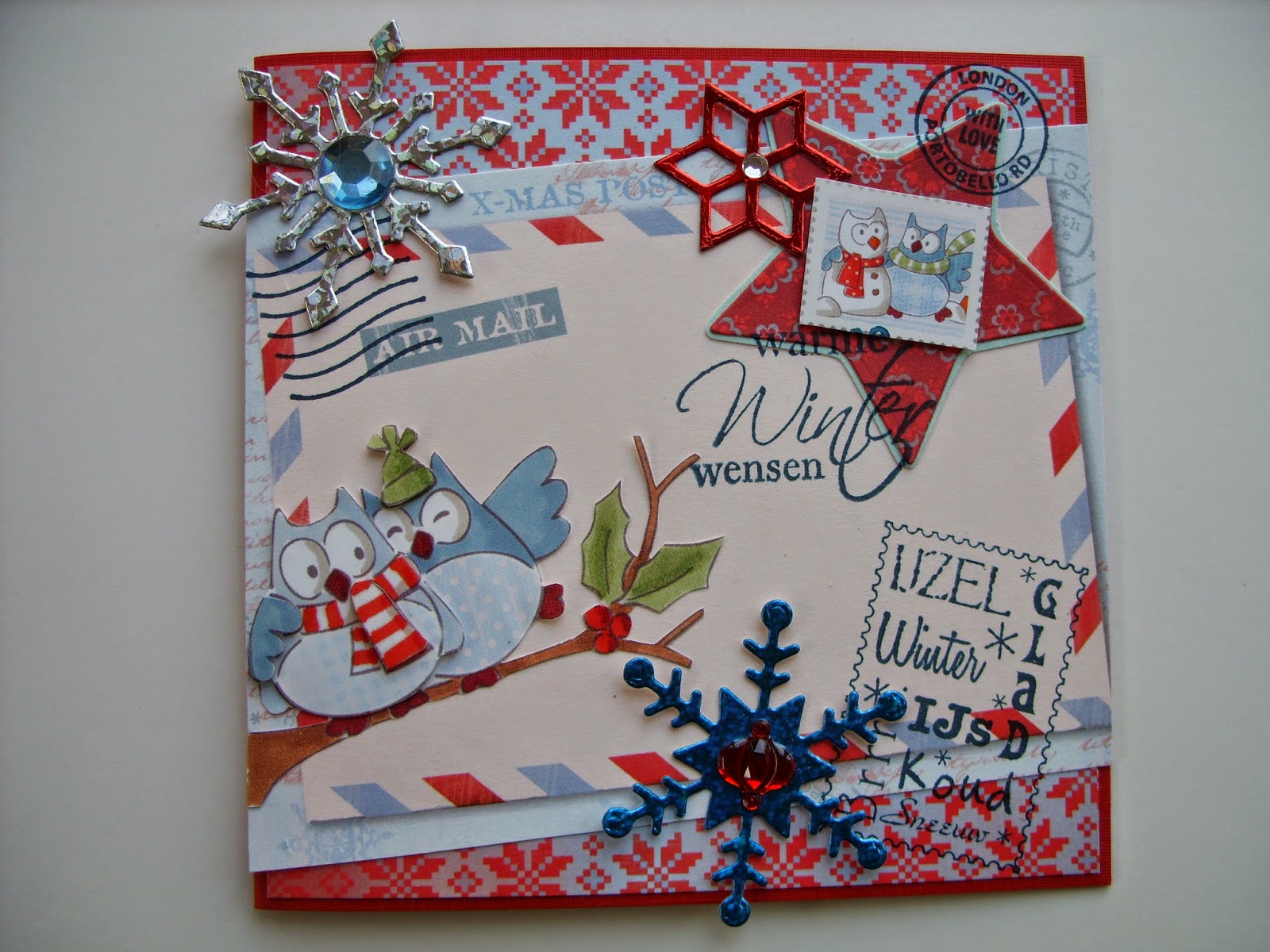 Zo we zitten weer midden in de kerstkaarten maken. Ik vind de uiltjes zo leuk van MD.