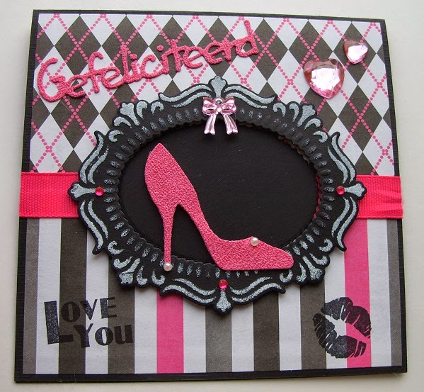 Bij Knutsels en kadootjes is de challenge zwart - wit met een kleur. nou bij mij is dit roze geworden.