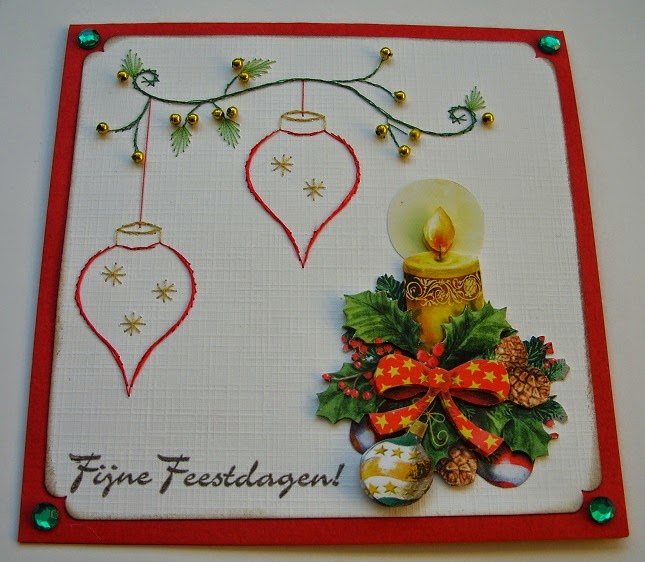 Zo weer een borduurkaart met deze prachtig vlinder erop en geborduurde bloemen.