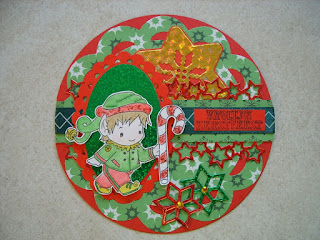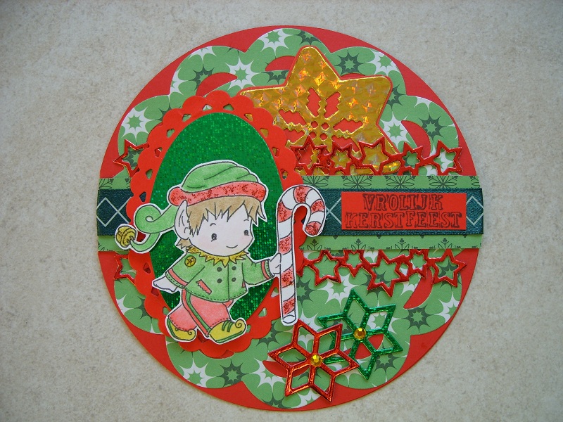 Een ronde kerstkaart gemaakt en deze kan ook weer bij de voorraad.