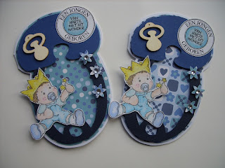 Deze kaarten zijn voor een jongens tweeling bedoeld en vond het erg leuk om dit patroon van de babyspelden van Ulla ervoor te gebruiken.