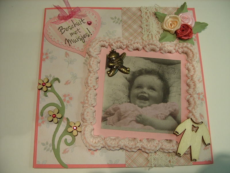 Voor deze kaart papier van Action, vierkante mal en hart mal van Nellie Snellen en deze gehaakt.