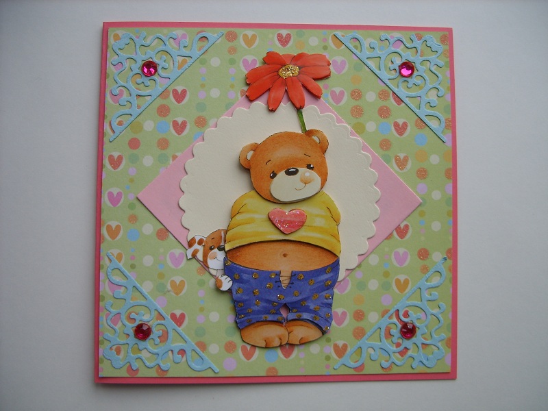 Wat een schattig kaartje met het lieve beertje..mijn complimenten..
