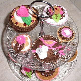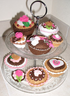Heb cupcake's gemaakt van vilt met het patroon uit het boekje Tea Time van Marianne Perlot.