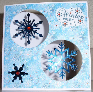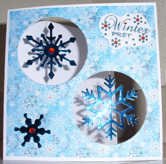 De sneeuwvlokken zijn creatables van Marianne design en versiert met strass steentjes.