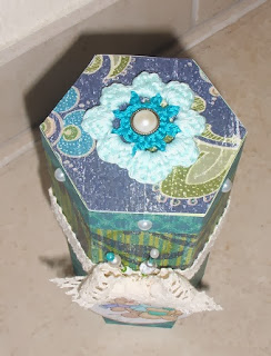 Zo aan het pimpen geslagen en deze baby voeding potjes versiert met lint en hoesje omheen gehaakt.Verder nog bedels, belletjes, lint, houten sneeuwpop en mallen gebruikt.