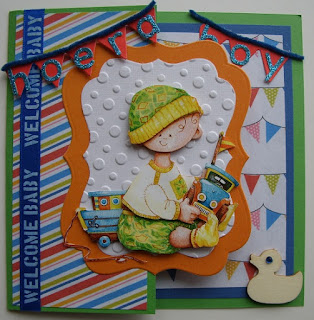 Prachtige baby kaart,leuk vind ik de vlaggen die je ook in de kaart hebt gemaakt.Groetjes Joke