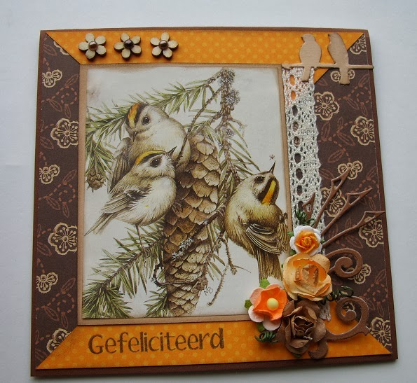 Een kaart gemaakt in de kleuren bruin en oranje en dat vind ik moeilijke kleuren hoor.