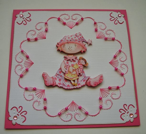 Een kaart in de kleur roze voor een verjaardag van een meisje. Nou dat is volgens mij wel gelukt.