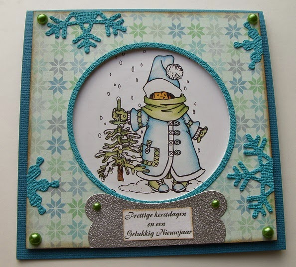 Een kaart gemaakt met dit schattige plaatje van dit Snoesje in de sneeuw.