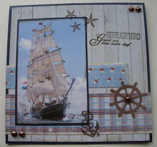 Het thema maritiem zie je inderdaad vaker voorbij komen bij mannenkaarten Lenie. Lekker stoer gemaakt hoor met dat mooie schip in de hoofdrol.