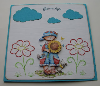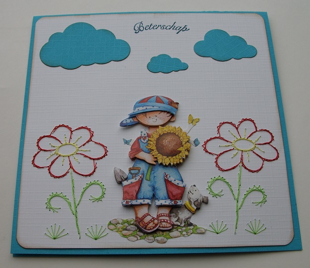 Ik vind je kaart ook schattig Lenie, mooi geborduurd en een lief plaatje.